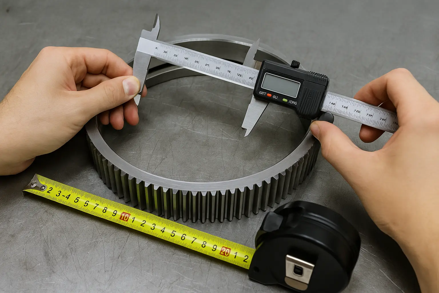 ໃຊ້ caliper ເພື່ອວັດແທກໄລຍະຫ່າງຈາກຂອບທາງນອກຂອງວົງແຫວນທີ່ຢູ່ທາງນອກ, ເຊິ່ງເປັນອັນທີ່ເອີ້ນວ່າ "ເສັ້ນຜ່າສູນກາງນອກ". ຄຸນຄ່ານີ້ກໍານົດພື້ນທີ່ທີ່ຄອບຄອງໂດຍແຫວນເກຍໃນໂຄງສ້າງໂດຍລວມ. ມັນບໍ່ສາມາດໃຫຍ່ເກີນໄປຫຼືນ້ອຍເກີນໄປ, ແລະມັນຕ້ອງເຫມາະກັບຕໍາແຫນ່ງຂອງອຸປະກອນຕົ້ນສະບັບຂອງທ່ານ.