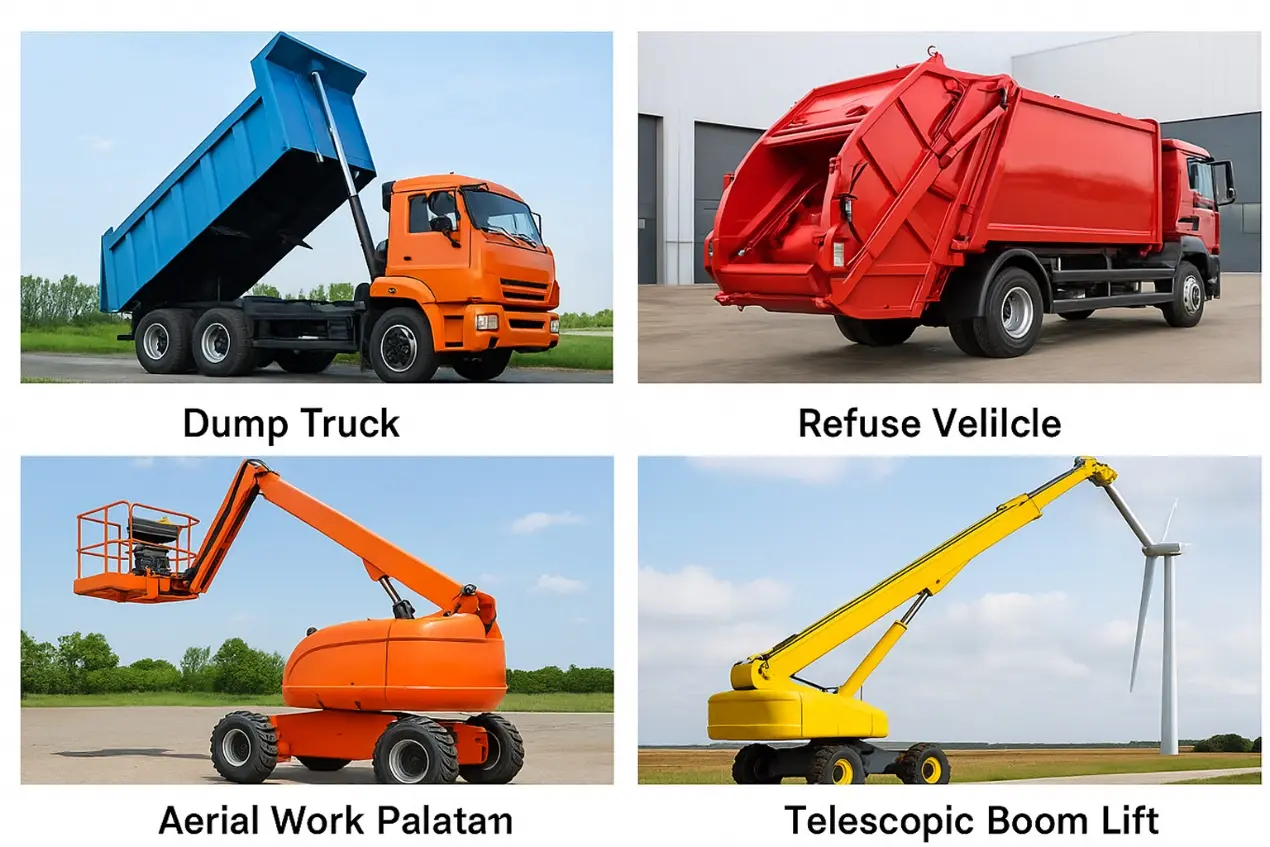 ໃນລົດບັນທຸກຂີ້ເຫຍື້ອ, ກະບອກໄຮໂດຼລິກຫລາຍດ້ານແມ່ນມັກໃຊ້ໃນການຍົກລົດເພື່ອບັນລຸການຖິ້ມຂີ້ເຫຍື້ອຢ່າງໄວວາ; ໃນລົດບັນທຸກອະນາໄມ, ຖັງໄຮໂດຼລິກຂັບລົດຫຼັງການເປີດດ້ານຫລັງແລະລະບົບການບີບອັດເພື່ອຮັບປະກັນການດໍາເນີນງານທີ່ມີປະສິດຕິພາບ; ໃນເວທີເຮັດວຽກທາງອາກາດເຊັ່ນ: ລົດບັນທຸກທາງອາກາດຫຼືລົດບັນທຸກ Scissor, ພວກມັນຄວບຄຸມແຂນຍົກແລະຍົກລະດັບເວທີປະຕິບັດງານ; ນອກຈາກນັ້ນ, ລົດບັນທຸກຂີ້ເຫຍື້ອກະສິກໍາ, ລົດບັນທຸກກະສິກໍາ, ແລະຕົວຂັບເຄື່ອນທີ່ມີລັກສະນະການກໍ່ສ້າງ Telestopop